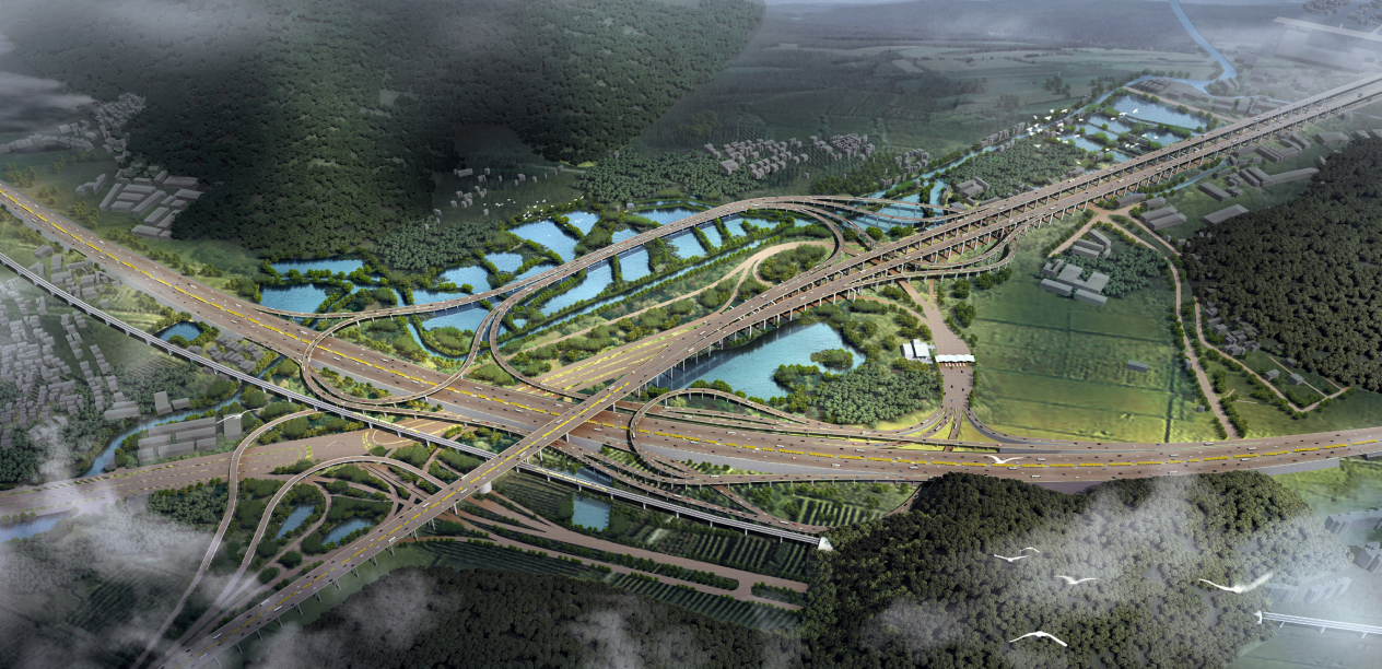 2、火炬西樞紐:與出入口互通、快速路樞紐復合設計的超大型互通立交群。