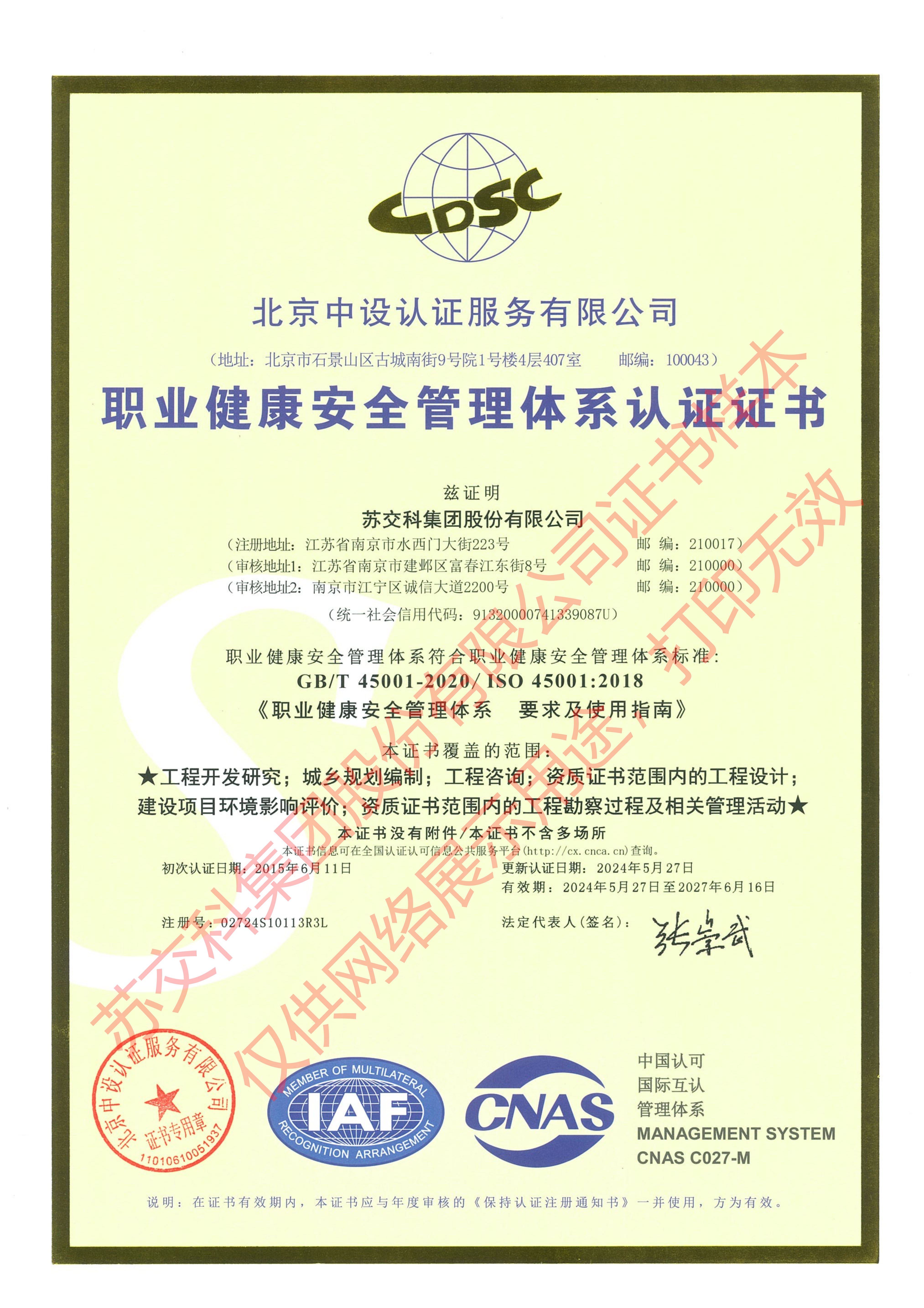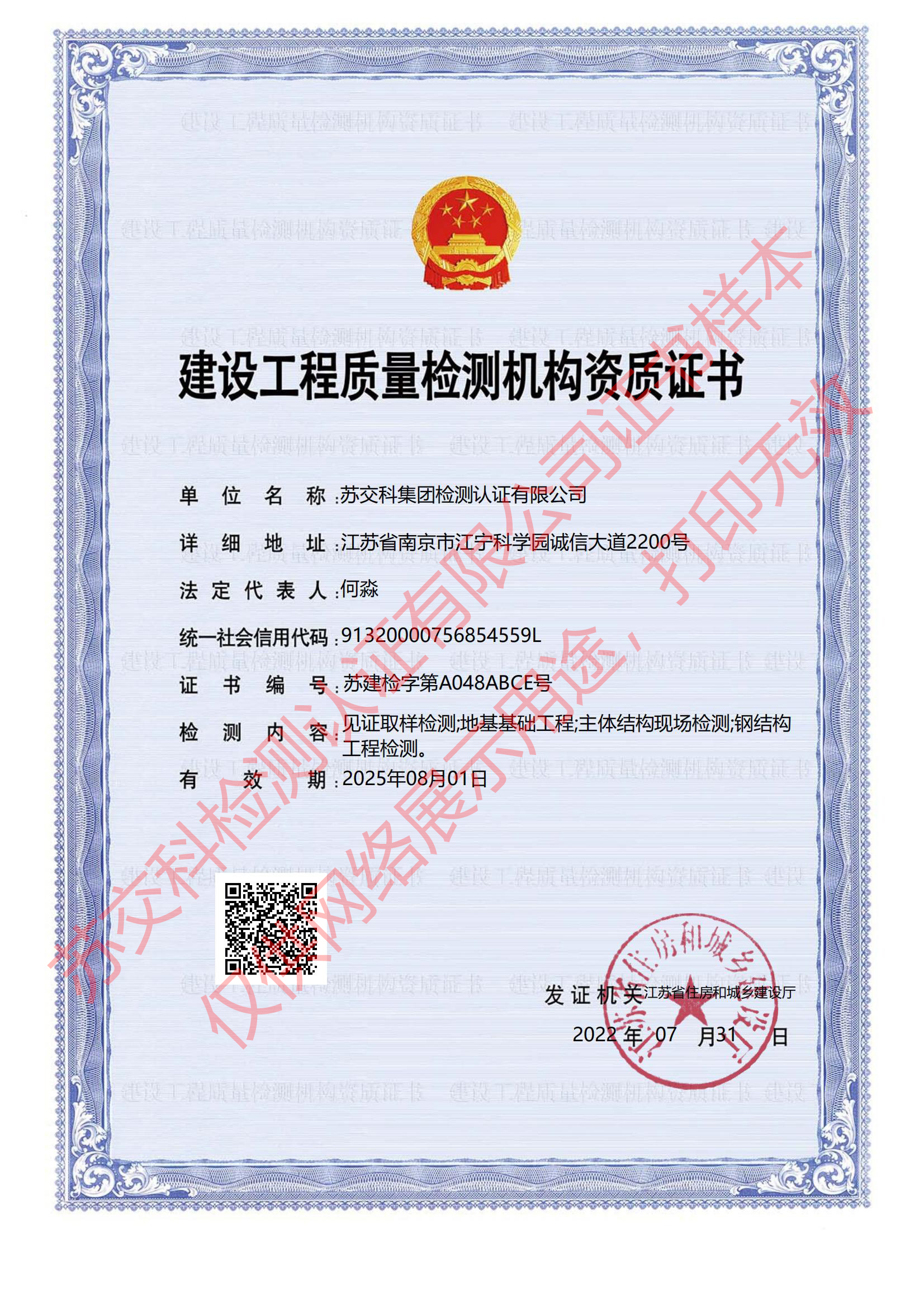 蘇交科檢測認證建設工程質量檢測機構資質證書(檢測類)