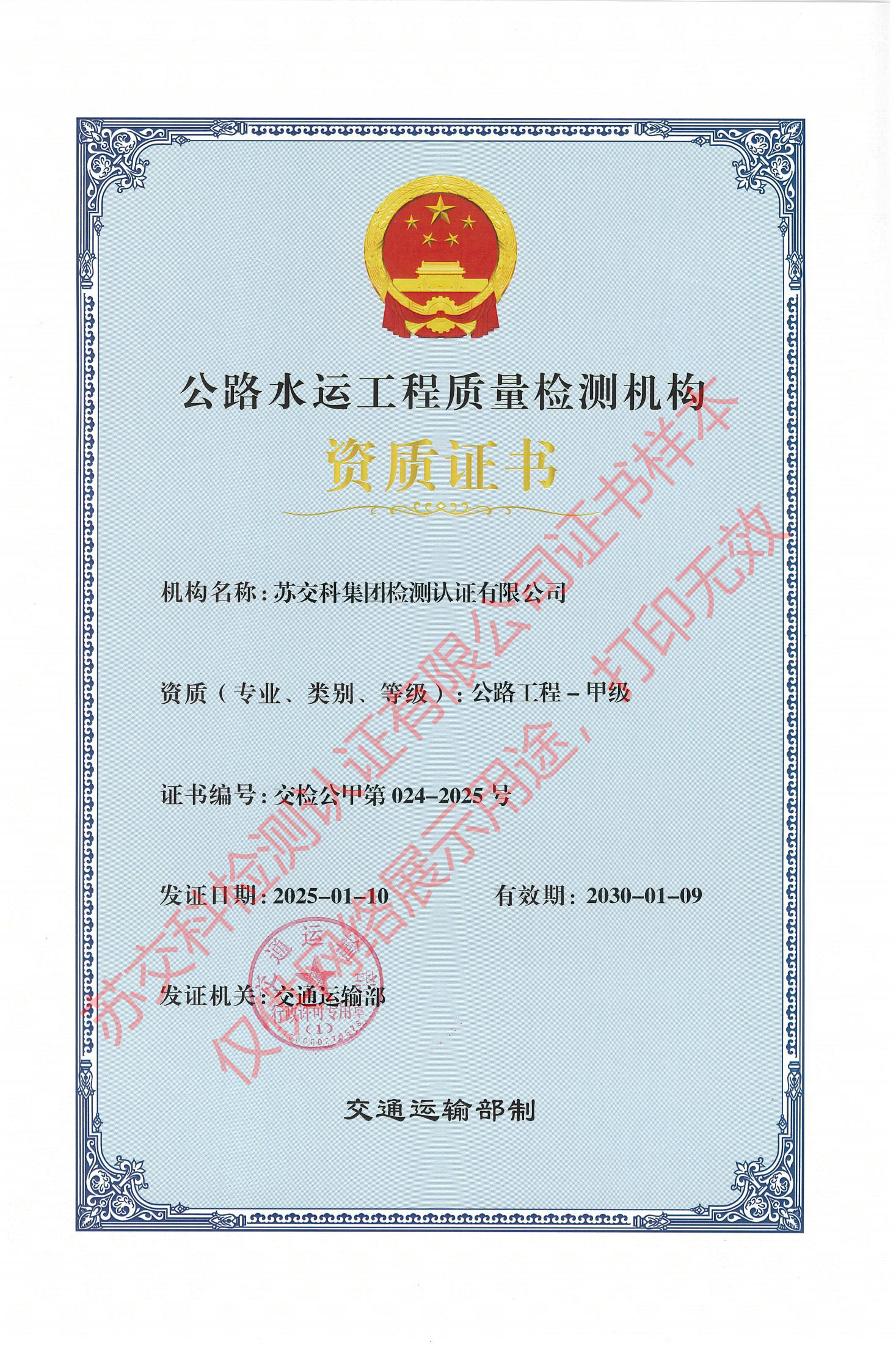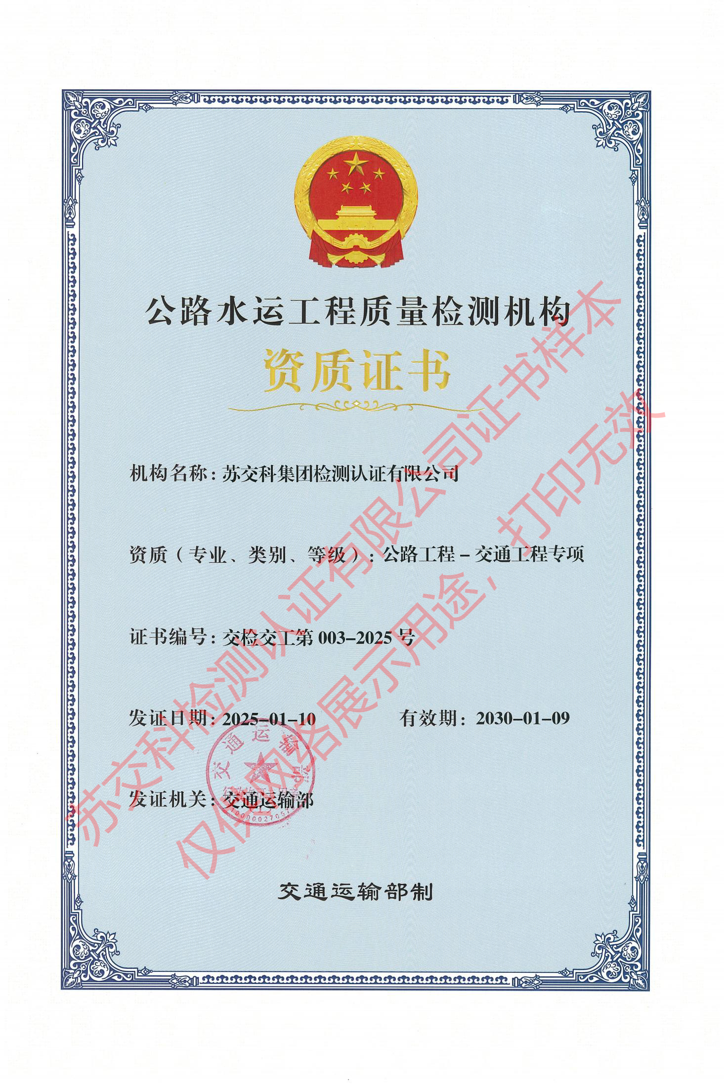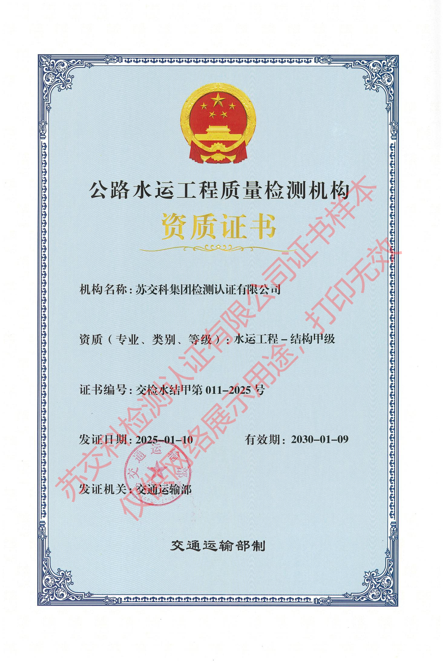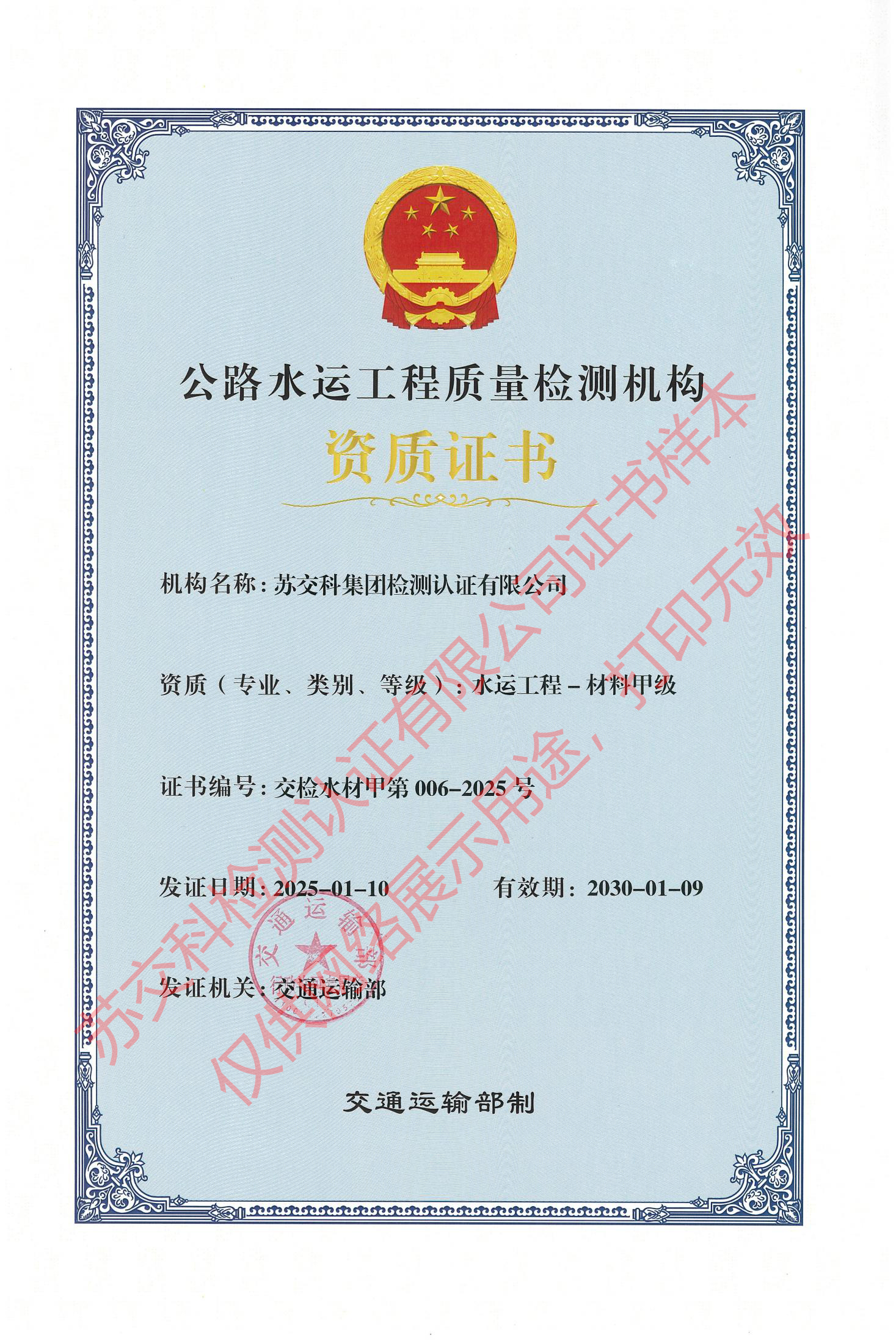 蘇交科檢測認證水運材料甲級