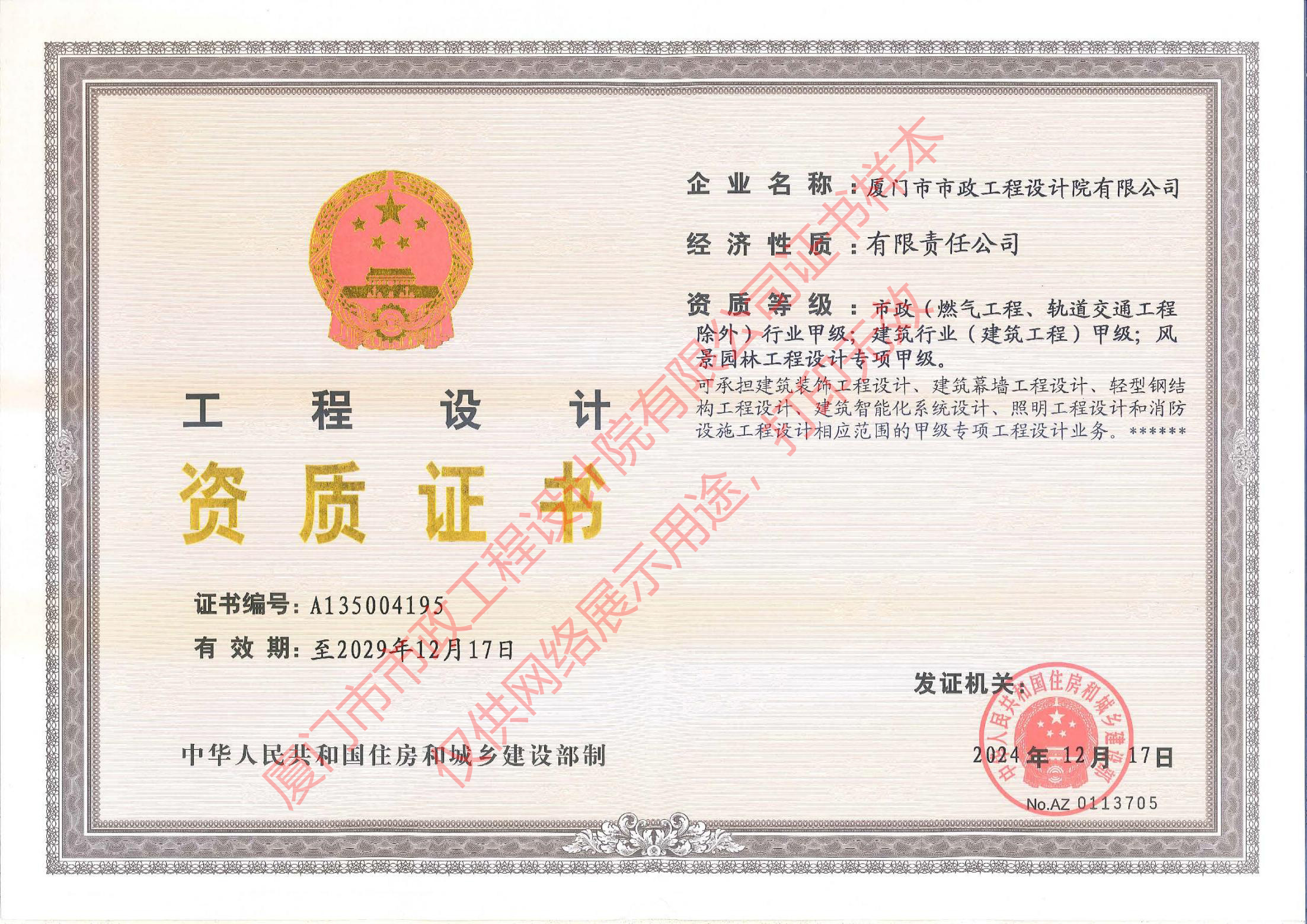 廈門市政市政、建筑、風景園林設計甲級