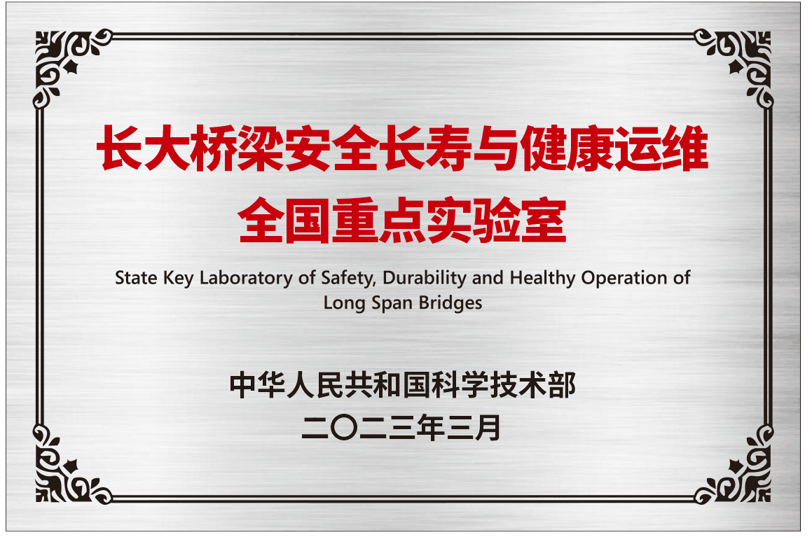 長(zhǎng)大橋梁安全長(zhǎng)壽與健康運(yùn)維全國重點(diǎn)實(shí)驗(yàn)室(國家科技部,2023)